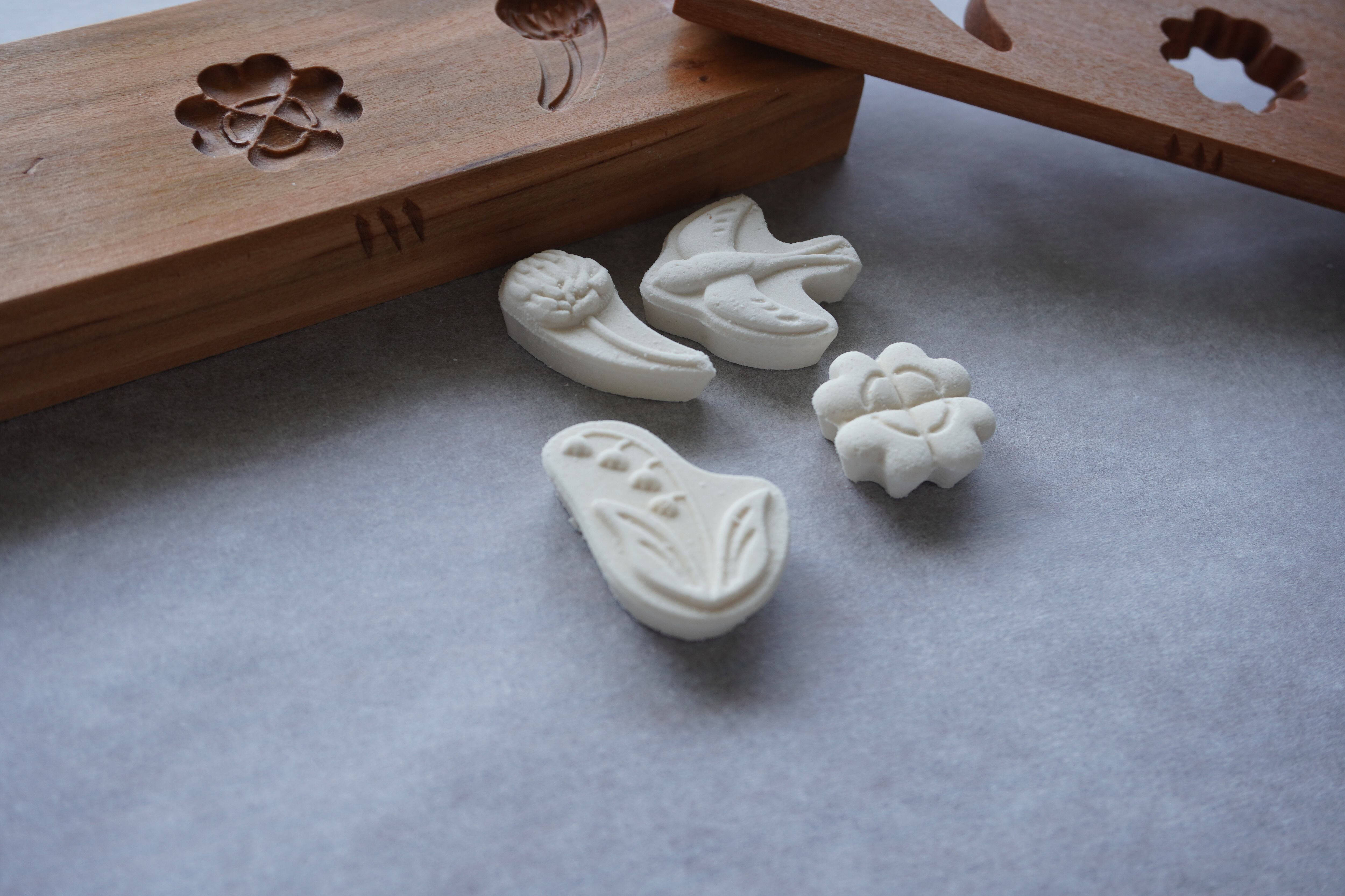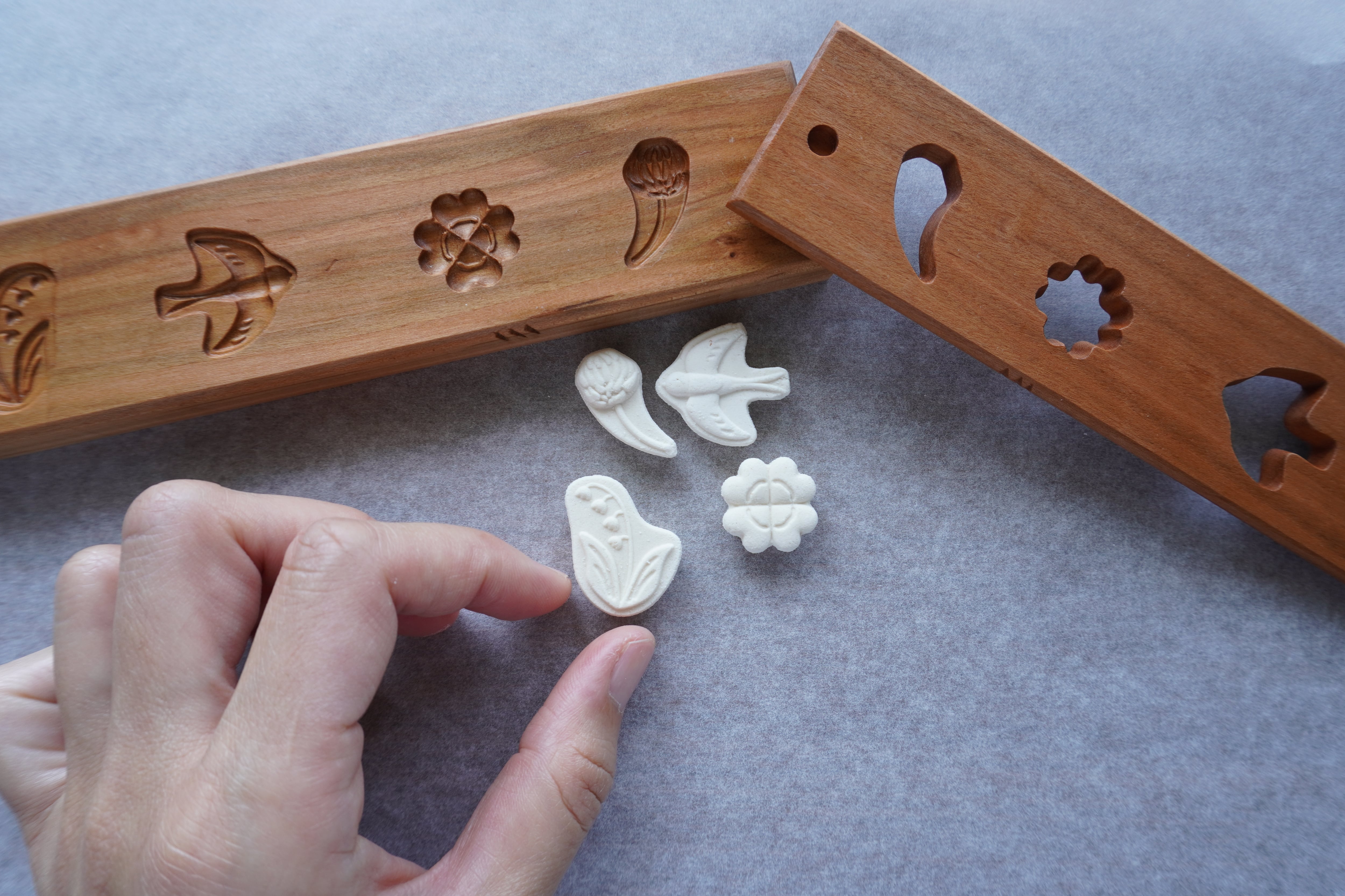 スズラン・ツバメ・シロツメクサ・クローバーのデザイン。