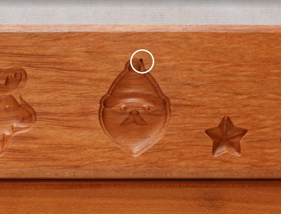 干菓子を打ってもほぼ分からない程度ですが、サンタの帽子に穴があいているのでB品です。